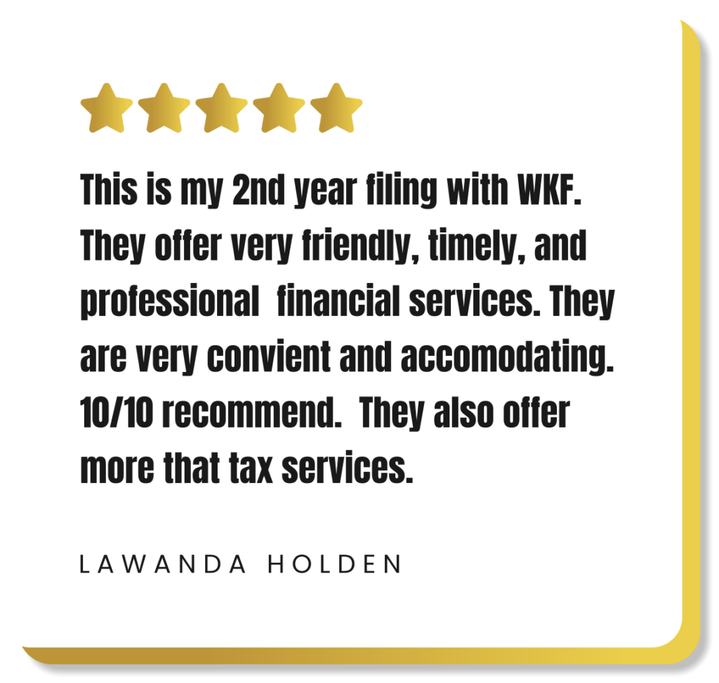 Experience stress-free, accurate, and fast tax preparation with our trusted WKF Tax Pros — providing personalized support to help you maximize your refund.
